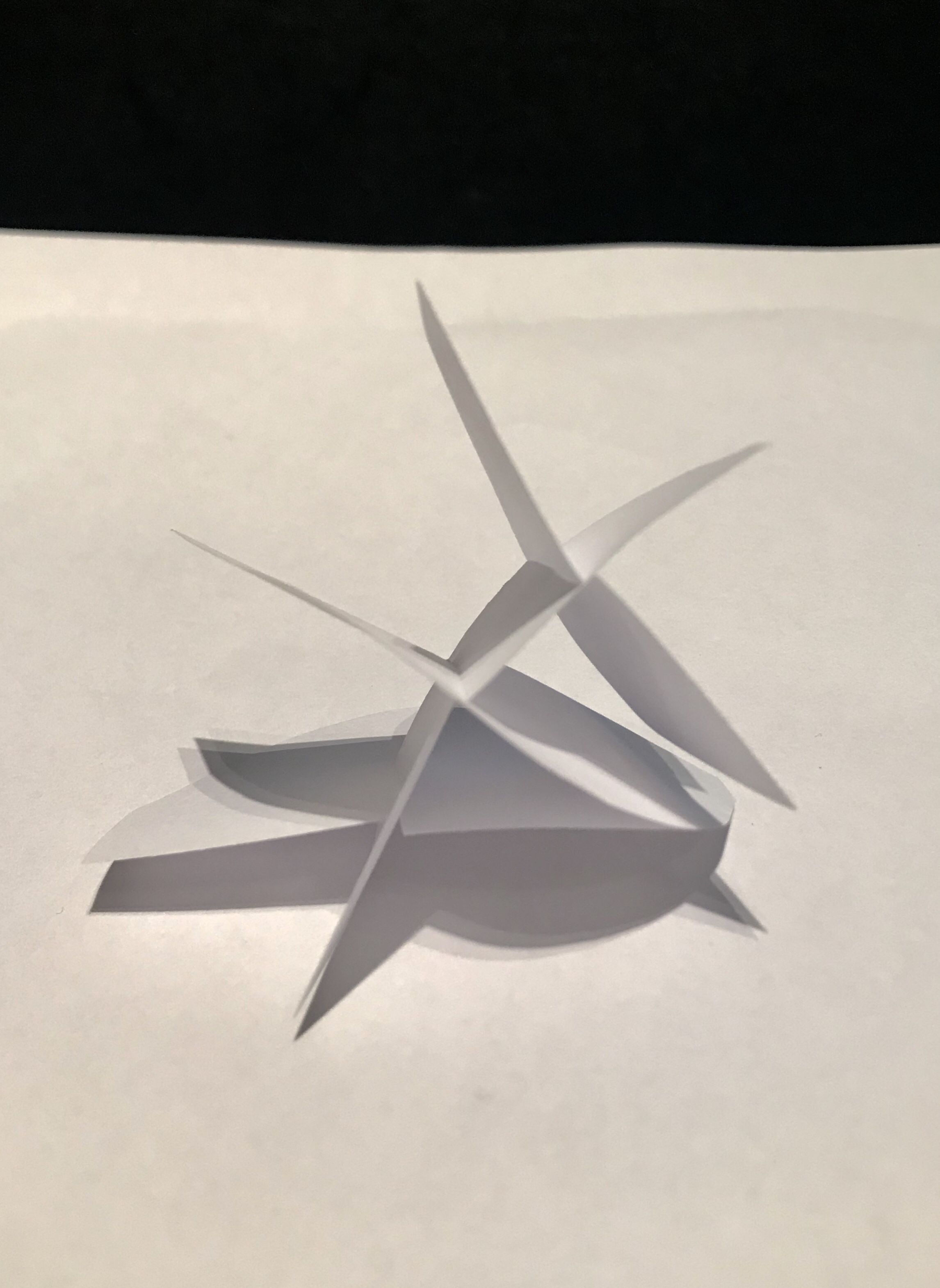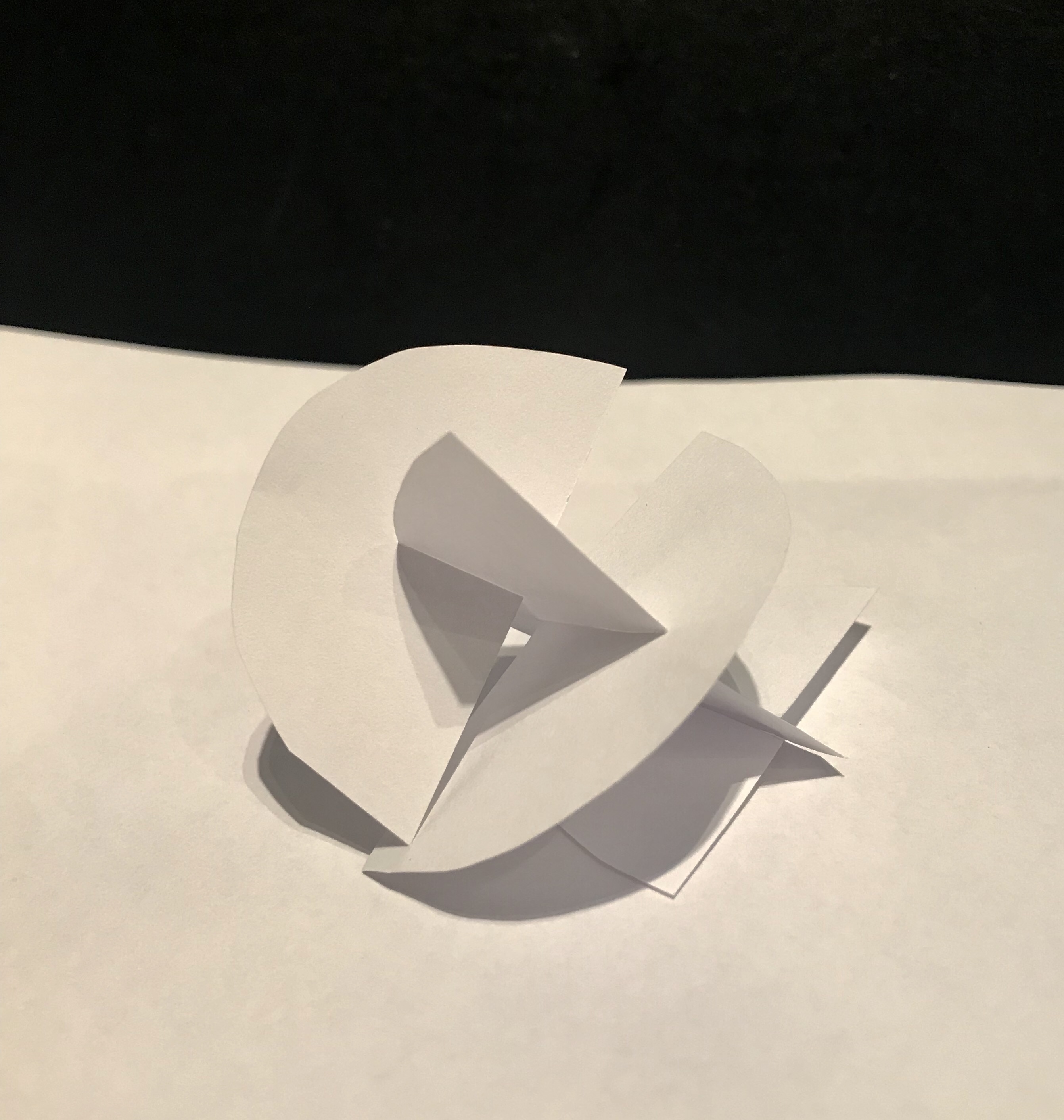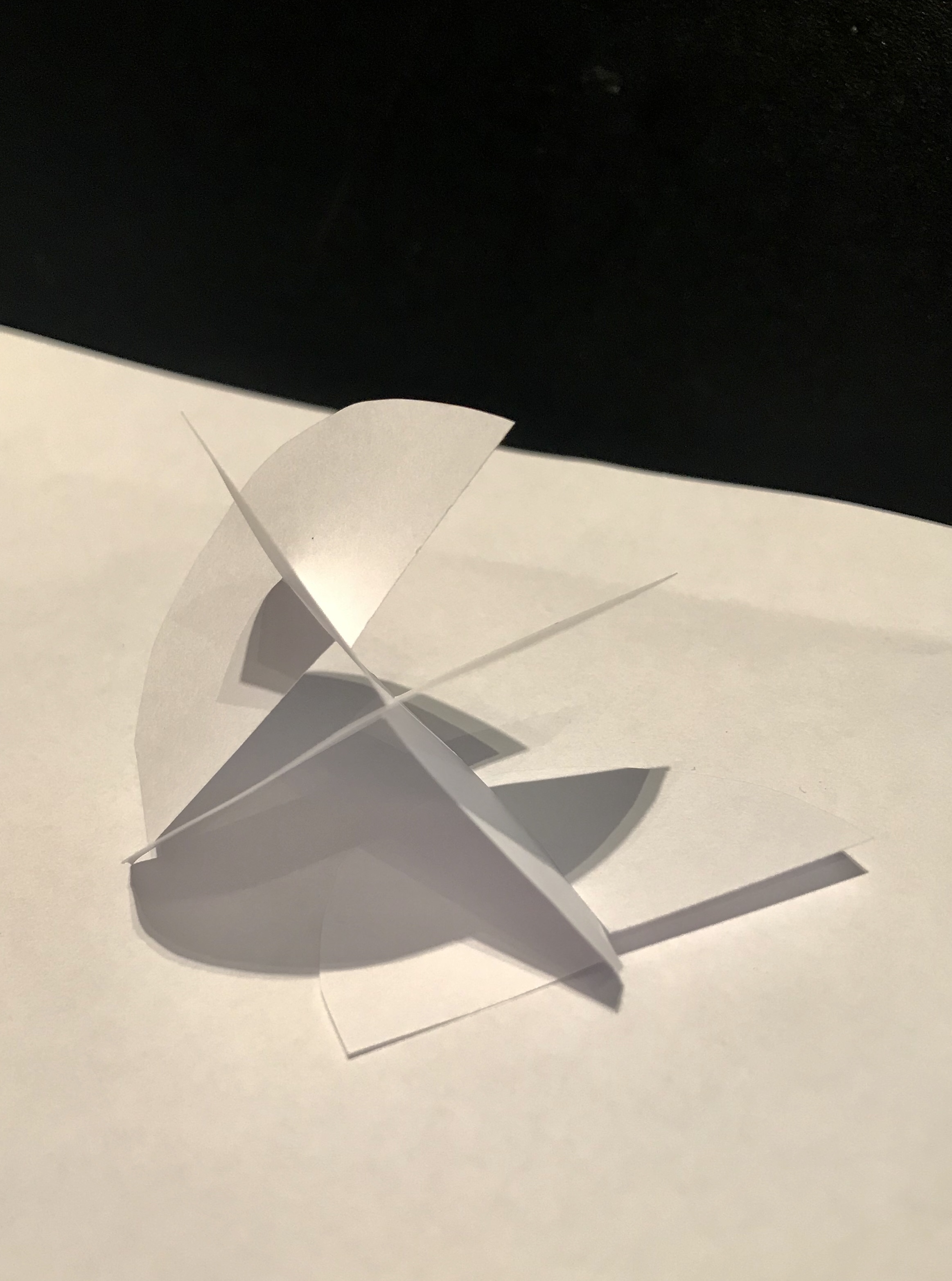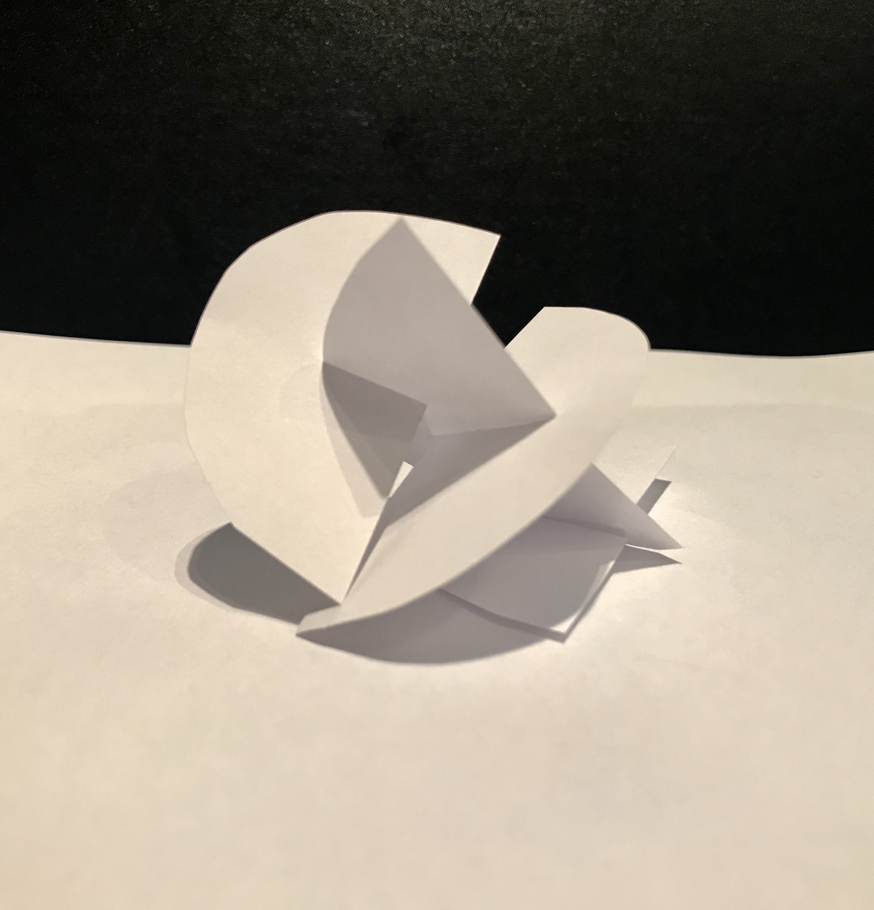 I wanted to trying experiment going 3D with my ideas, I wanted to carry of focusing on shape and shadow working with white paper. I cut out hemispheres and interlocked them with one another to creates some interesting pieces. The models have the contrasting use of curved and sharp edges which I really like and think helps tell the story.
