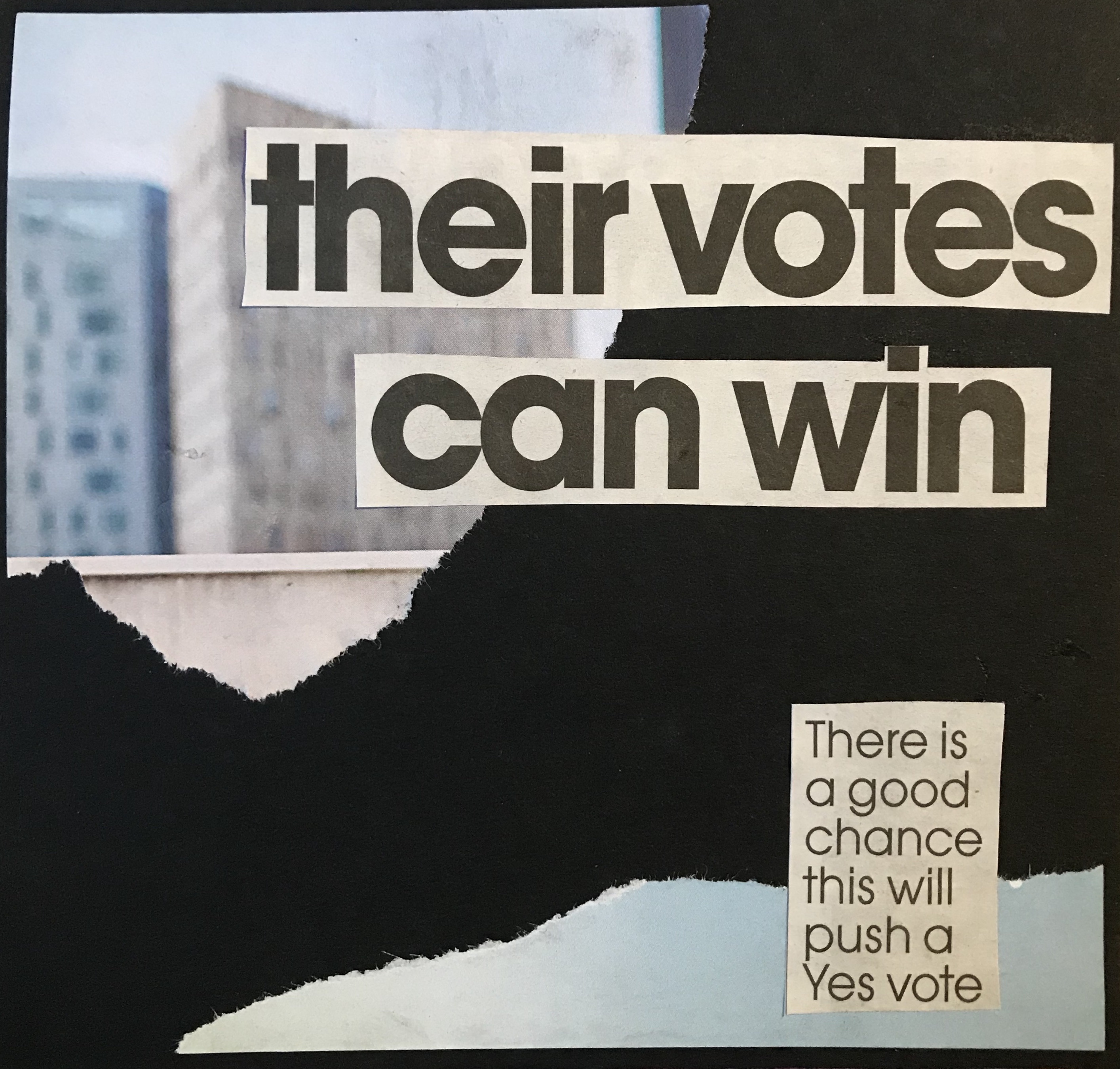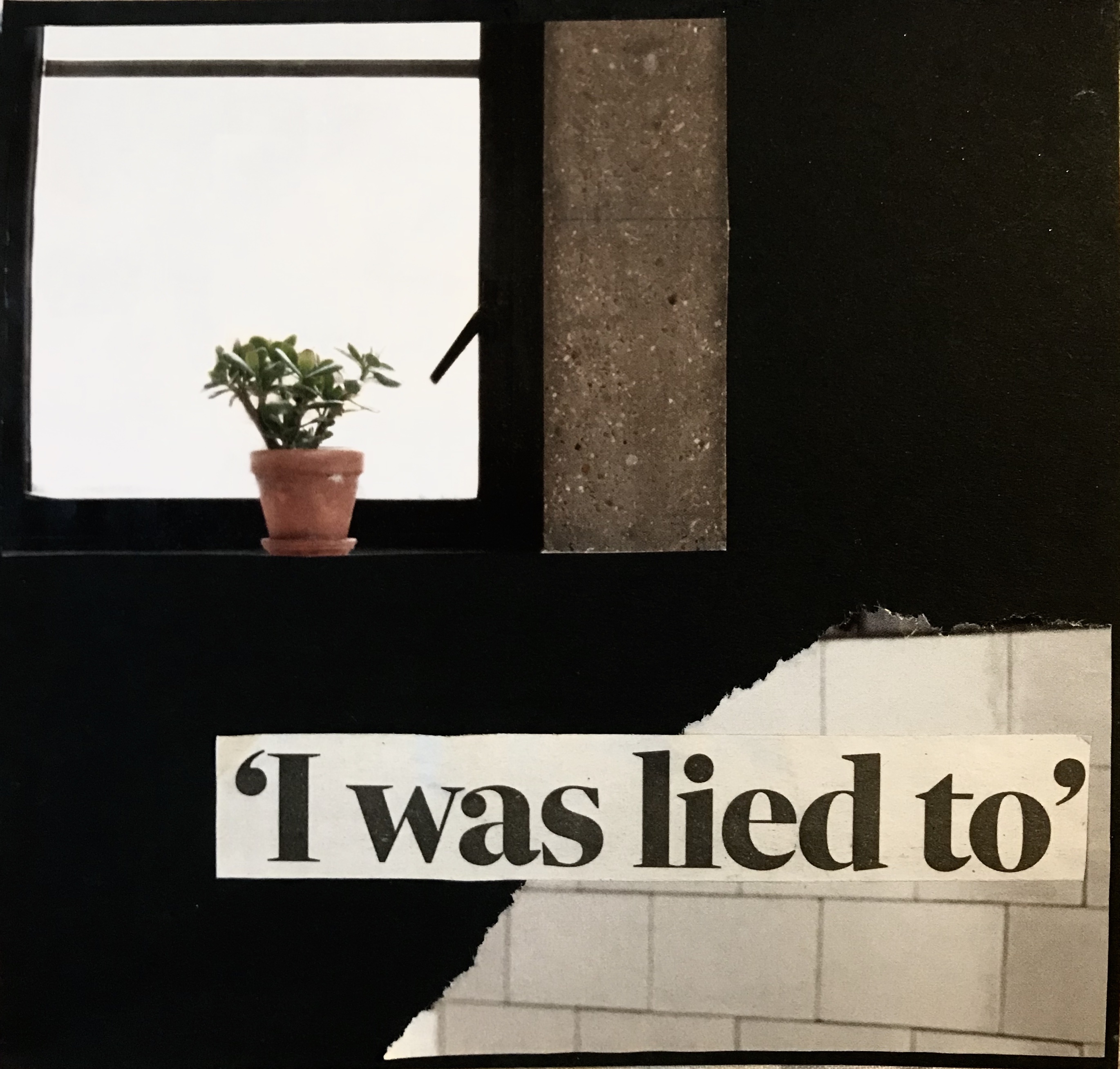 Moving forward in development I really wanted to continue working with collage working on black paper. I really wanted to focus on text using cut-outs from magazines and news papers to create small powerful collages. I chose to work on a small scale of 14cm by 14cm as I wanted my work to be quite small and simplistic contracting the big dramatic themes and issues within the collages.