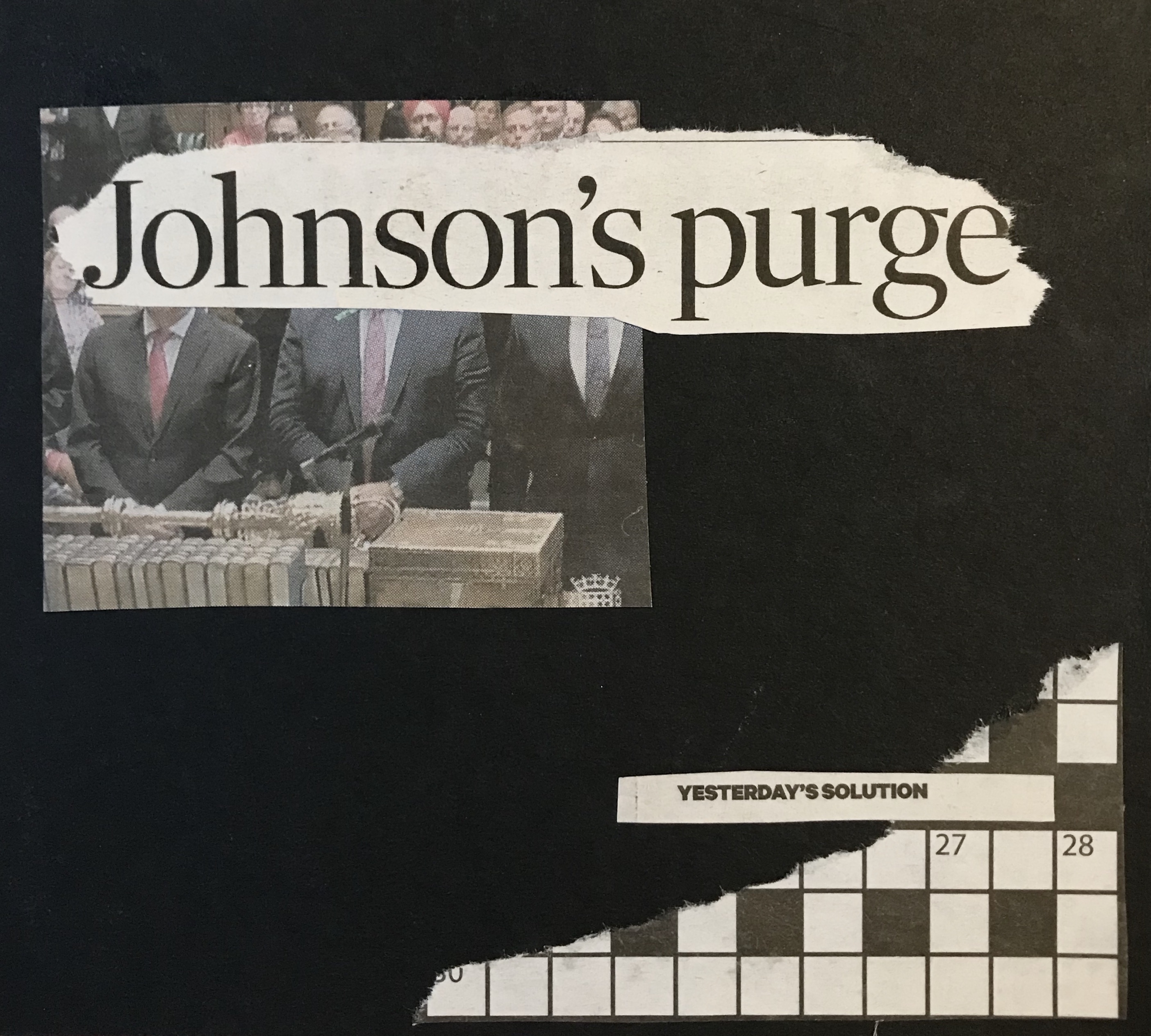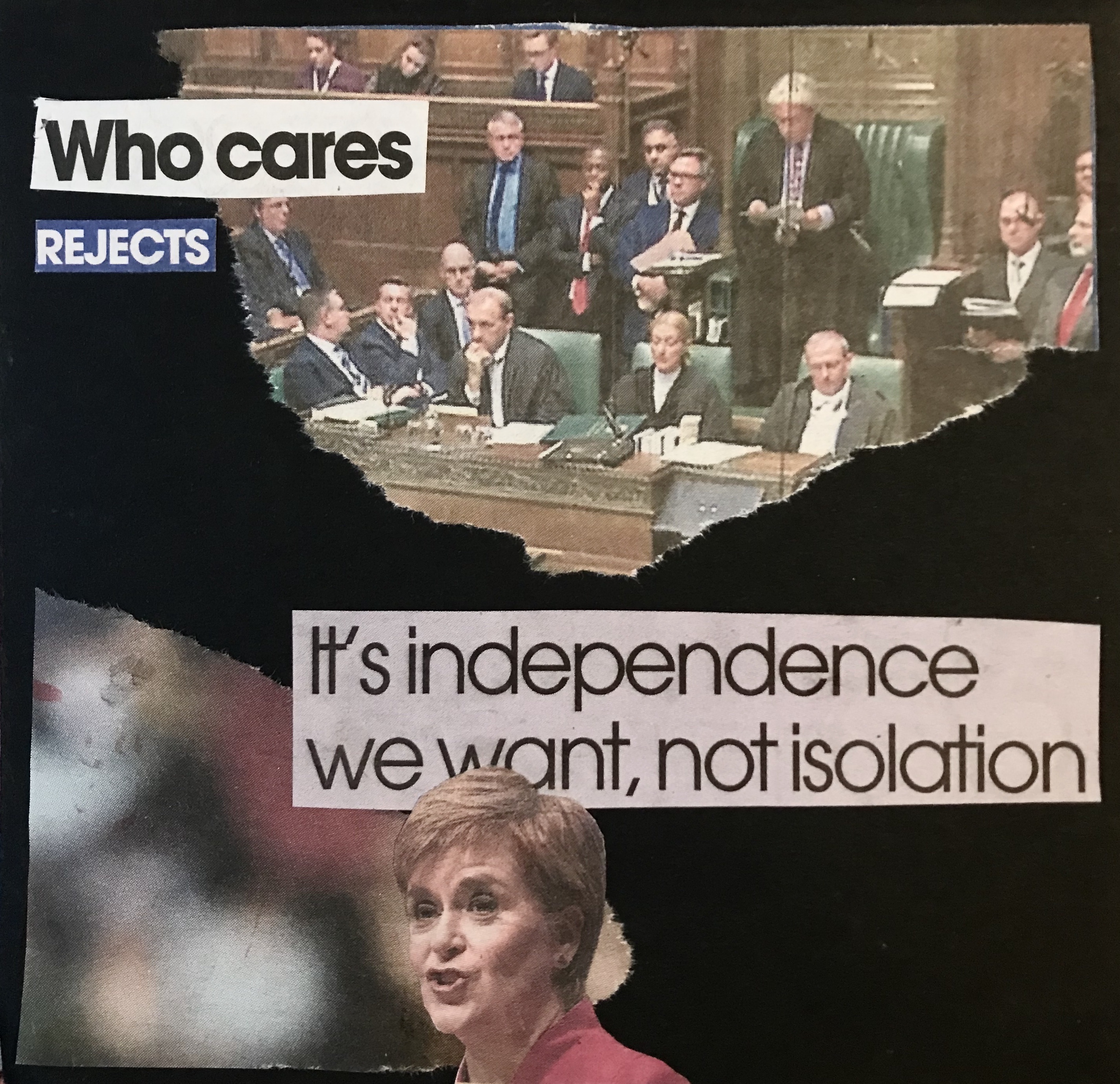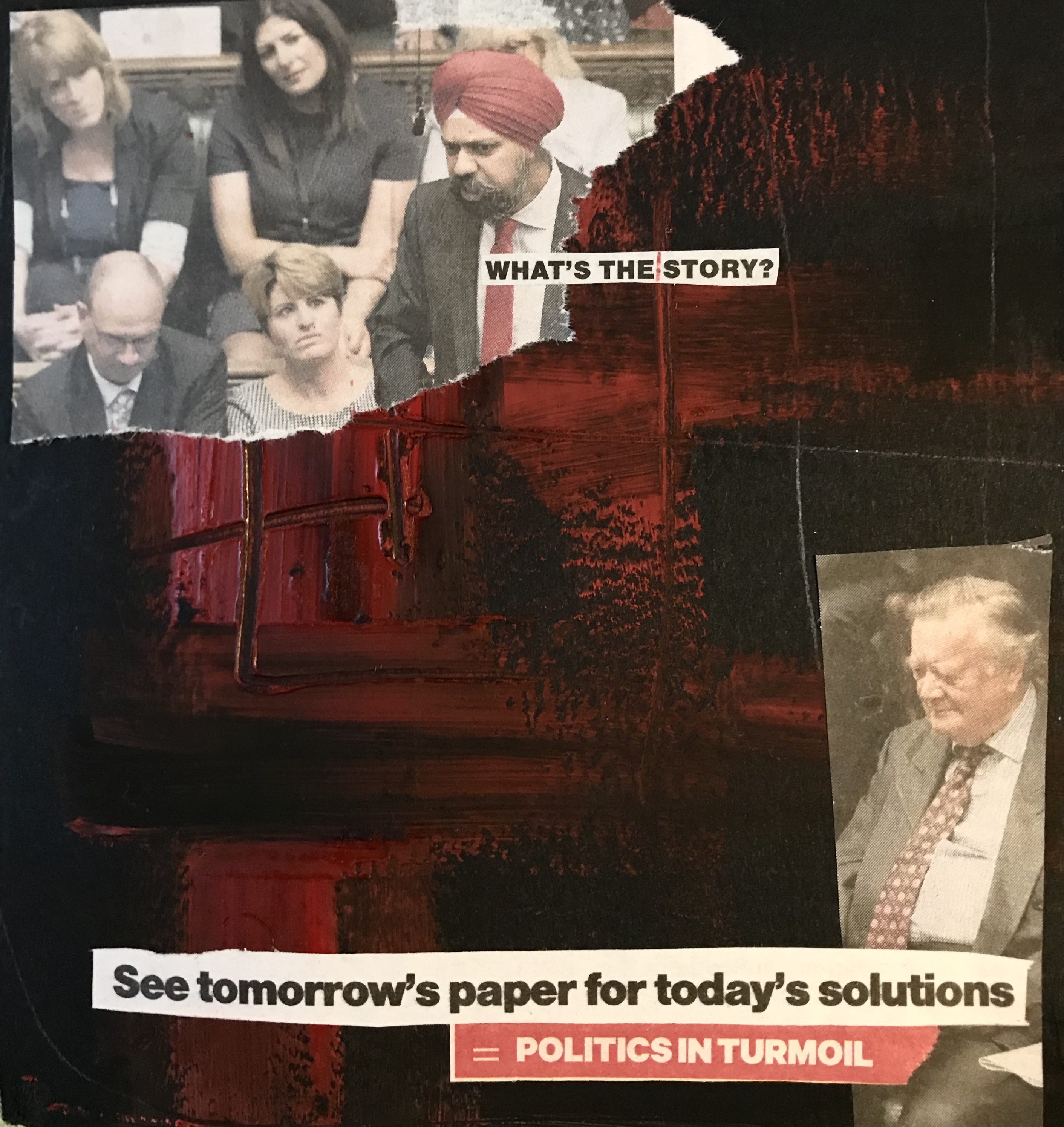 I tried using images of politicians cut outs from the newspaper to go along side the text. I think this actually worked really well as you can see the clear themes and adds faces with in my work.