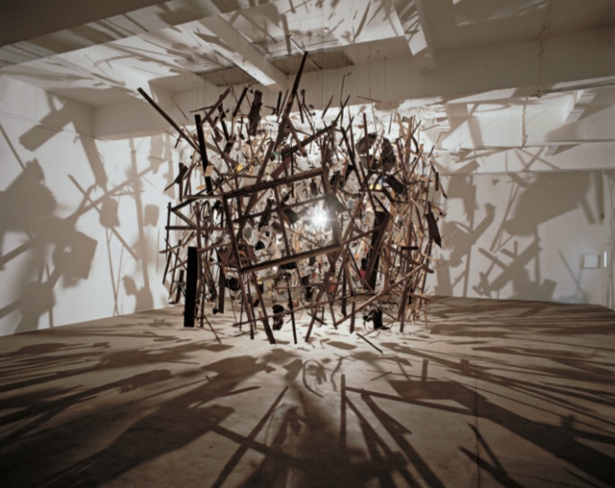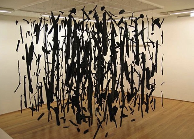 I think Parker’s work is really interesting. I live the strong geometric feel the installations have with all the sharp edges and shapes. I like how the piece looks like an explosion however that is being controlled and like time has stopped before anything gets damaged.