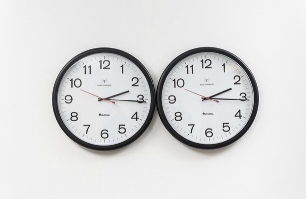 Eventually one of the clocks would start to fall out of synch and would finally stop. However it is essential to the work that the clocks can be reset therefore the work is infinite just like his love for Ross.